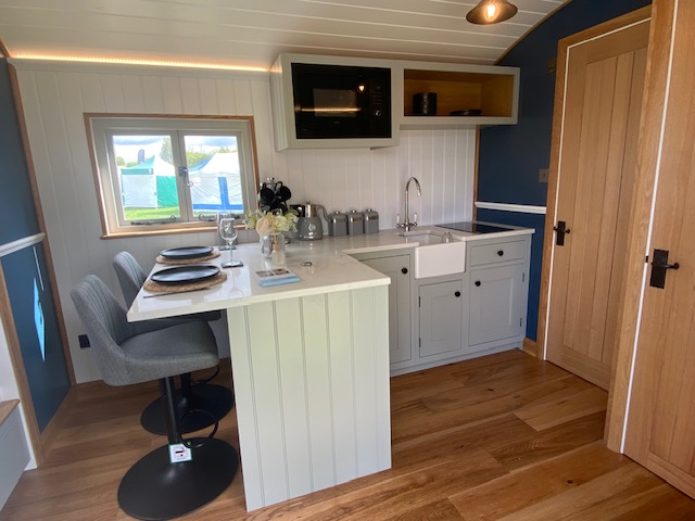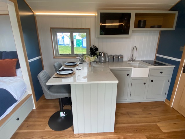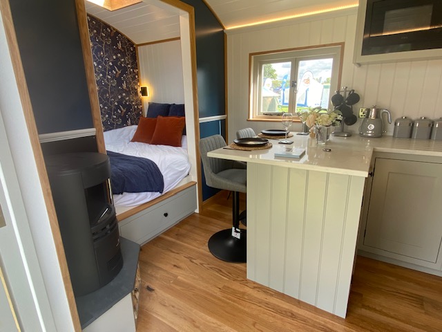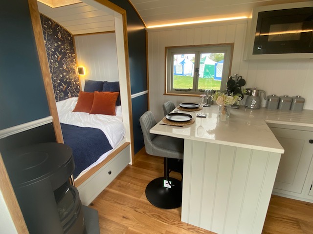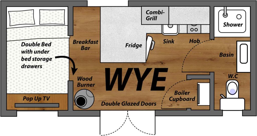 Our larger Severn hut can be modified to be able to sleep 4 by replacing the dining area with a sofa bed.